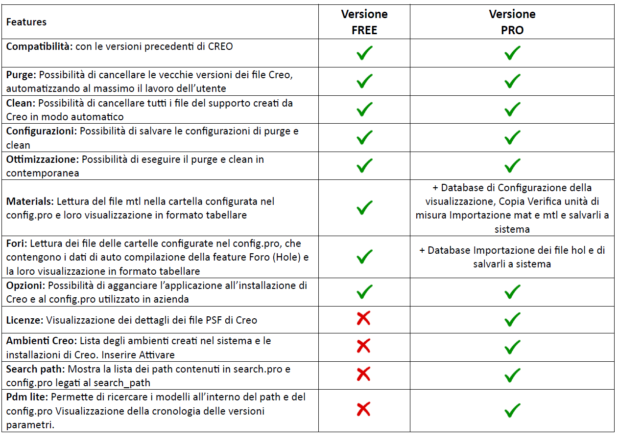 L’applicazione è stata pensata per ottimizzare il lavoro di chi amministra le installazione di Creo. Infatti contiene una serie di funzionalità per gestire, creare e modificare oggetti come i materiali, i fori e le vecchie versioni degli oggetti Creo.